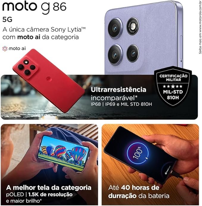 Outro ponto importante do Moto G75 é seu design moderno e funcional, que alia estética e ergonomia, facilitando o manuseio diário e oferecendo conforto mesmo em longos períodos de uso. A combinação de resistência, desempenho, bateria duradoura e capacidade de armazenamento transforma o Moto G75 em um smartphone completo para quem procura tecnologia avançada sem abrir mão da durabilidade.