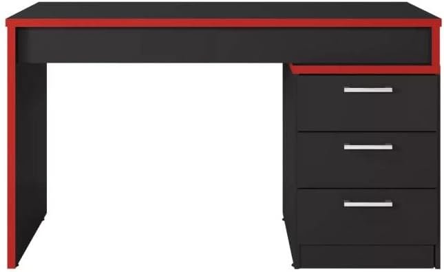Ideal para jogadores de todos os níveis, criadores de conteúdo e até profissionais que gostam de um ambiente vibrante, ela mistura elegância com o toque esportivo do preto e vermelho, tornando-se o centro das atenções em qualquer sala de escritório ou home office. Além disso, a escolha pela madeira de pinho garante leveza e resistência, enquanto o acabamento laminado traz sofisticação, resultando em uma mesa que não só suporta até 40 kg de equipamentos, mas também encanta pelo visual contemporâneo e robusto.