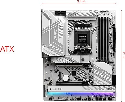 O armazenamento é versátil, com suporte a PCIe Gen5 e SATA3 6 Gb/s, garantindo velocidade e confiabilidade. A expansão é ampla, com múltiplos slots para placas de vídeo e SSDs NVMe, tornando a ASRock X870 Pro RS perfeita para builds robustas.