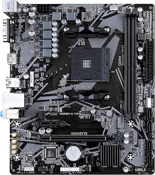 A Gigabyte A520M K V2 (Rev. 1.0) é uma placa-mãe Micro-ATX (mATX) projetada para quem busca desempenho estável e custo-benefício em sistemas com processadores AMD Ryzen. Com soquete AM4 e chipset A520, esta placa oferece compatibilidade com CPUs Ryzen de 3ª, 4ª e 5ª geração, sendo ideal para tarefas do dia a dia, jogos casuais e pequenas estações de trabalho. Seu design compacto permite instalação em gabinetes menores, mantendo excelente funcionalidade e praticidade.