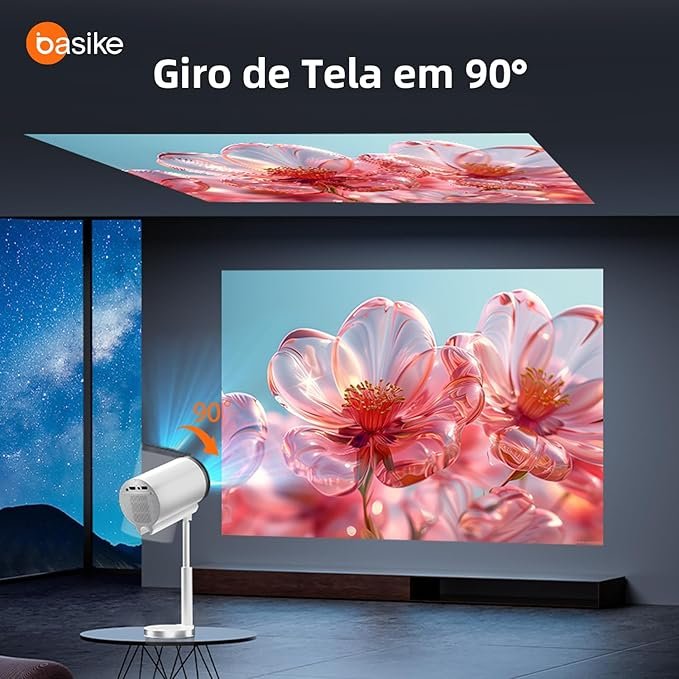 Além da qualidade visual, o Hy300 Pro se destaca pela versatilidade e facilidade de uso. Com conectividade 5G, você consegue transmitir conteúdos de forma rápida e estável, sem depender de cabos. O ajuste keystone facilita a correção da imagem, enquanto a rotação de até 150° permite posicionar o projetor em diferentes ângulos e ambientes sem perda de qualidade. Suas múltiplas conexões, incluindo HDMI, USB, AV e entrada para cartão SD, oferecem compatibilidade com notebooks, consoles, pendrives e outros dispositivos, tornando-o uma solução completa para entretenimento ou trabalho.