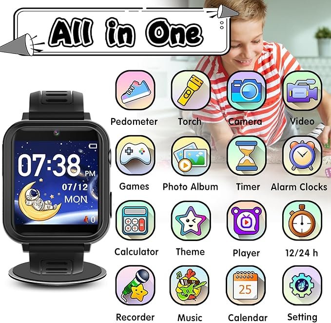 Se você procura um relógio inteligente infantil que combine tecnologia, diversão e aprendizado, este modelo é a escolha perfeita para meninos e meninas de 4 a 12 anos. Com tela sensível ao toque, ele proporciona uma navegação fácil e intuitiva, permitindo que a criança explore todas as funcionalidades de forma independente. Além de mostrar as horas, o relógio conta com câmera integrada, possibilitando que os pequenos registrem fotos e vídeos de suas aventuras, incentivando a criatividade e a curiosidade. Seu design moderno e colorido alia conforto e resistência, sendo ideal para o uso diário e para acompanhar o ritmo agitado das crianças.