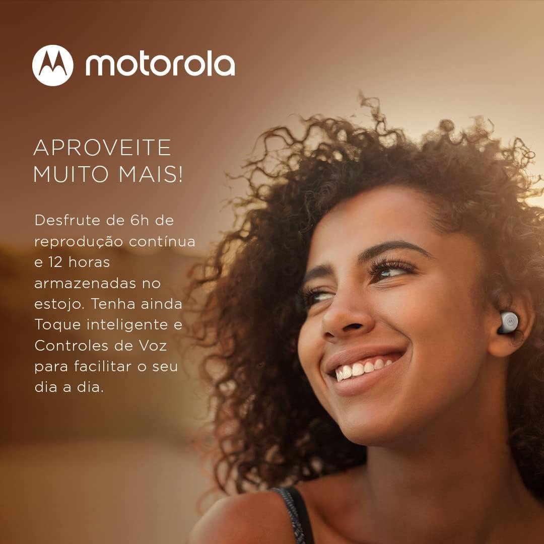Os Moto Buds 250 são um fone TWS com som em alta definição, projetado para oferecer qualidade sonora superior em músicas, podcasts e chamadas. Com até 18 horas de reprodução total, incluindo o uso combinado com o estojo de carregamento, você poderá desfrutar de longos períodos de áudio sem se preocupar com recargas frequentes, garantindo conveniência e praticidade no dia a dia.